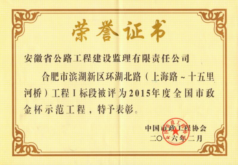 交通建設(shè)優(yōu)秀監(jiān)理企業(yè)